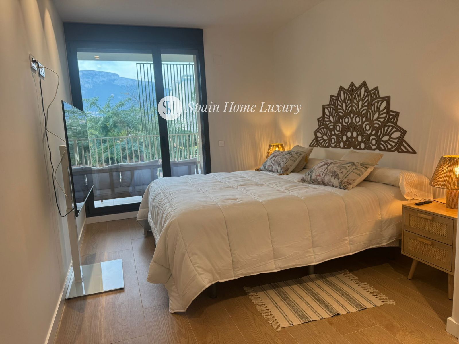and a balcony with open views of the Montgó mountain and the garden.