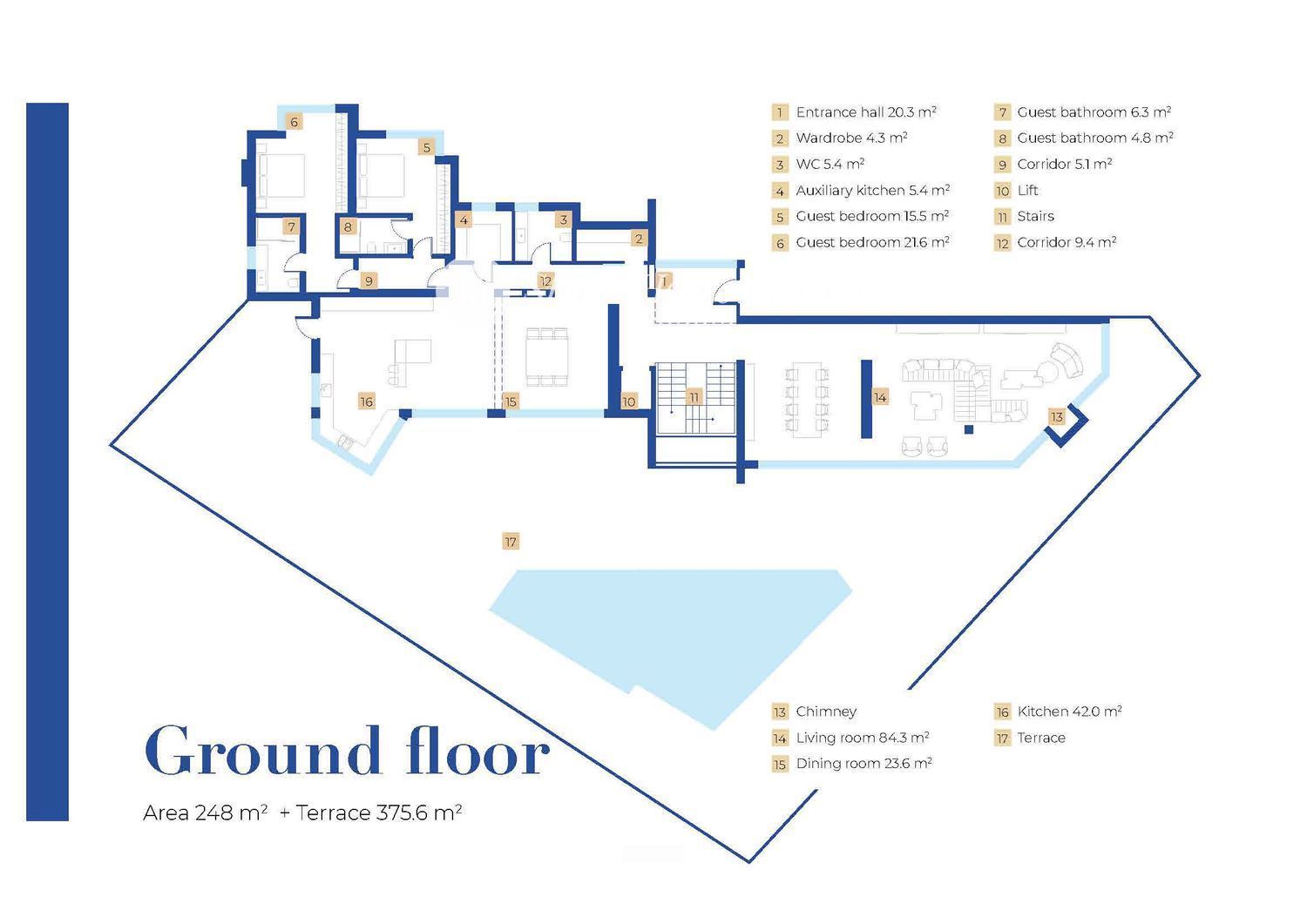 Parcela de 2.035 m², 1.619 m² construidos, distribuidos en 4 plantas con ascensor, 7 dormitorios, 6 baños y garaje para 8 coches.
