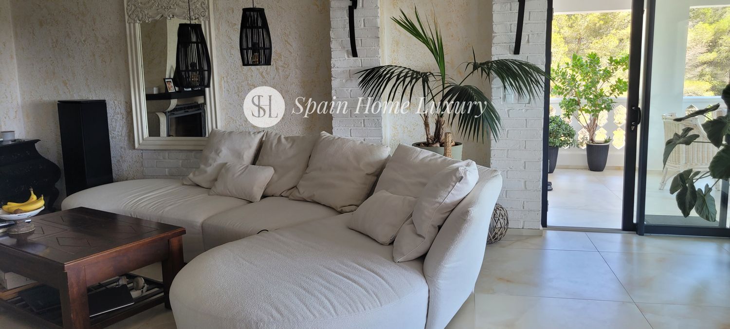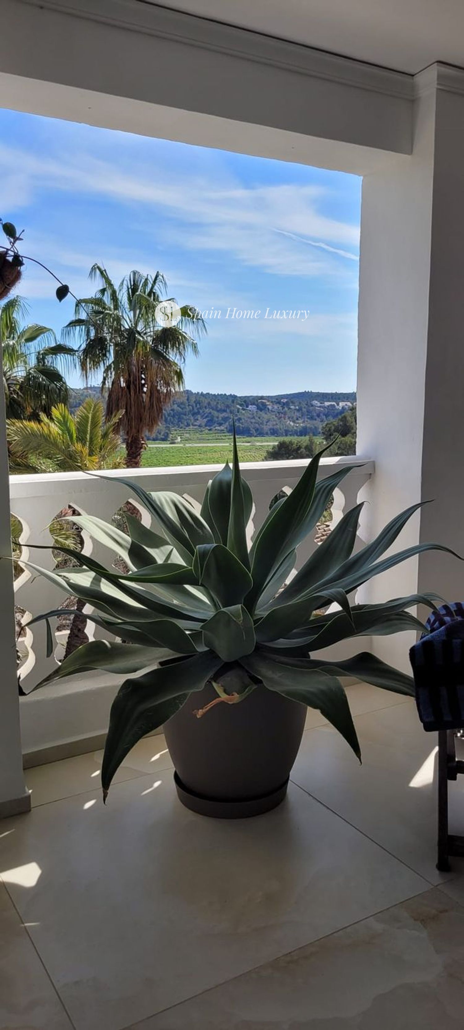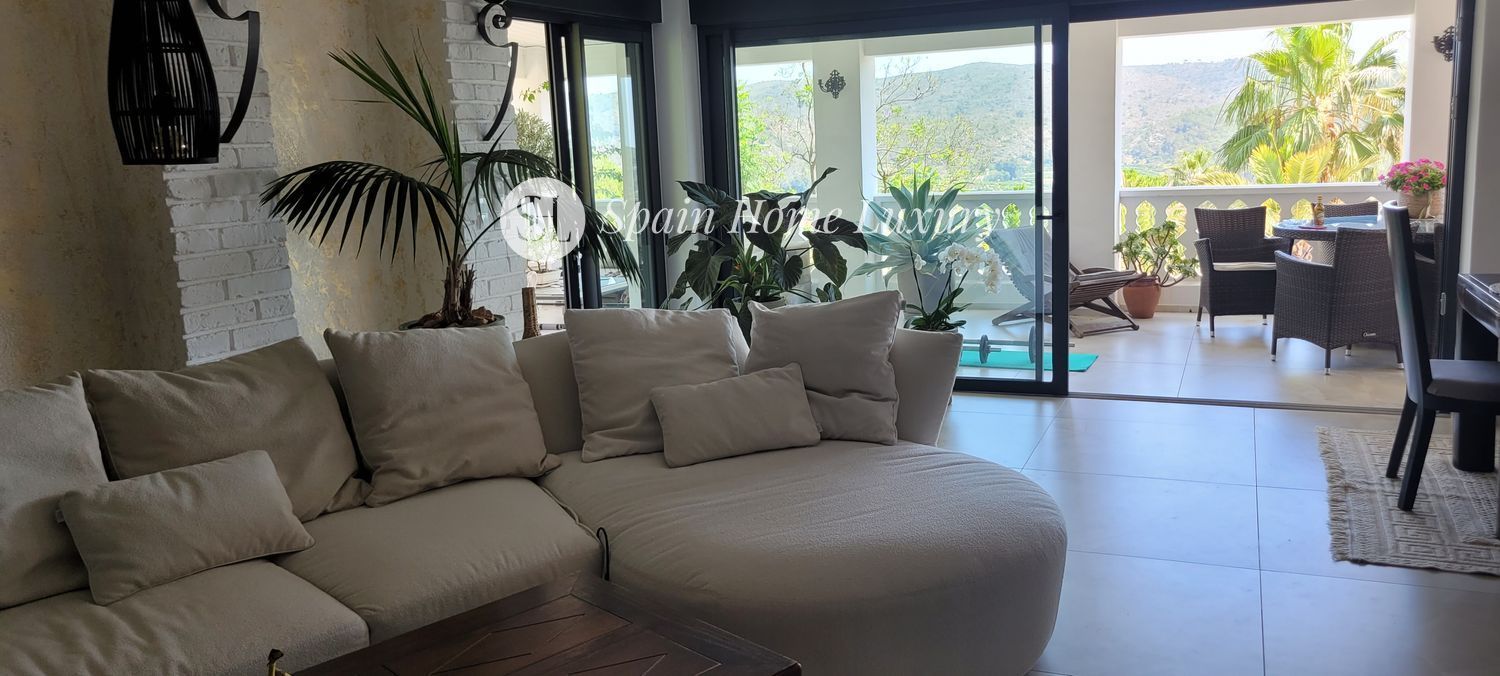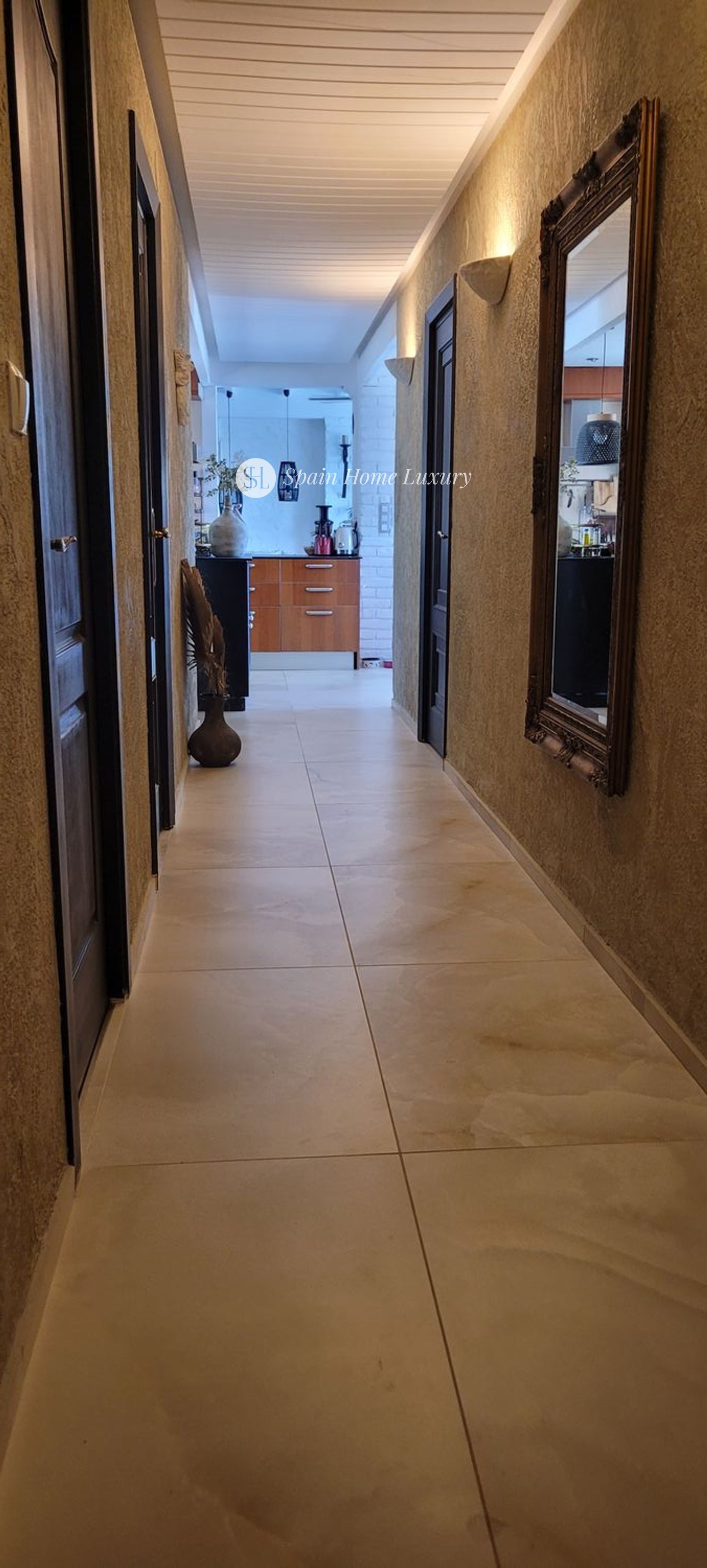 El apartamento de la planta alta destaca por sus amplios ventanales panorámicos correderos, que garantizan una excelente iluminación natural y una conexión directa con el entorno.