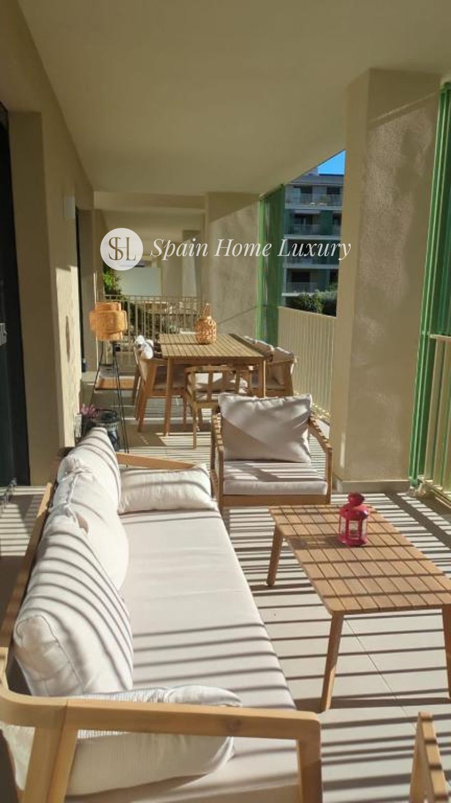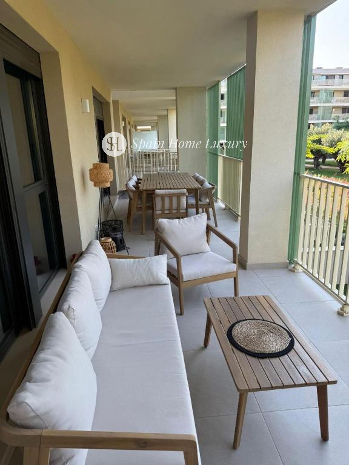 un salón-comedor con acceso a una terraza soleada,