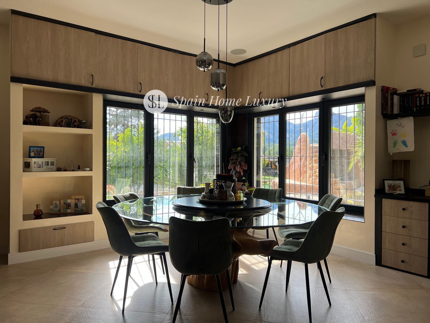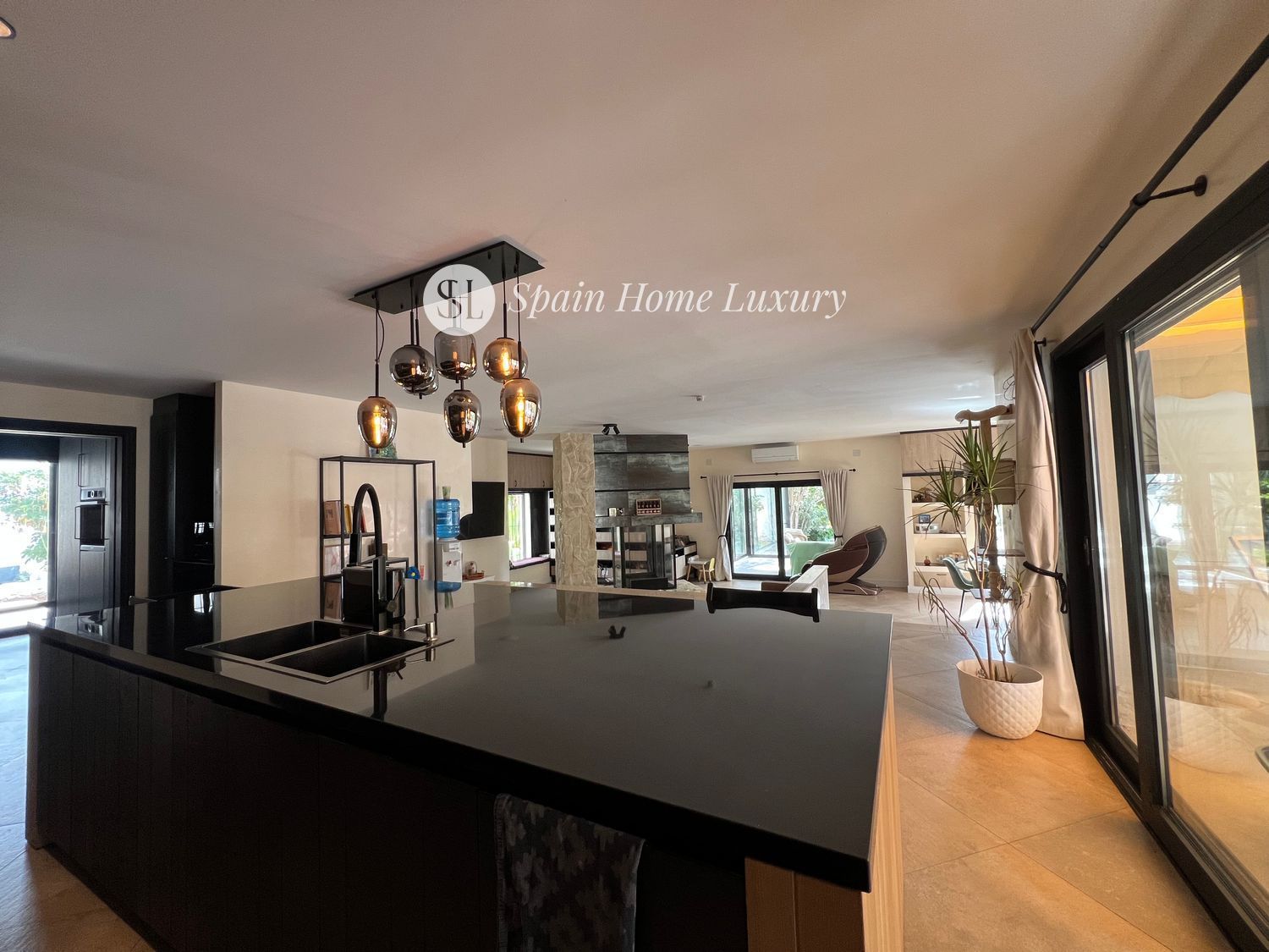Spain Home Luxury presenta : Chalet independiente en venta con un diseño elegante y un jardín consolidado de 3500m2. Disfruta de las vistas impresionantes desde la terraza corrida con marquesinas de madera noble. La propiedad cuenta con una piscina con suelo de teka, una pinada colosal y un cenador para disfrutar al aire libre. En su interior, encontrarás estancias amplias, un salón con chimenea y una cocina de diseño equipada con electrodomésticos de primeras marcas alemanas. En el piso superior, hay cuatro habitaciones dobles y dos baños completos de diseño. La casa está aclimatada con calefacción central y splits en todos los dormitorios. Los suelos de parquet en toda la vivienda y el mármol en los baños le dan un toque de elegancia. Además, cuenta con una zona de lavado y acceso directo al exclusivo Club de Golf El Bosque. Con una construcción simétrica y una superficie de 600m², esta propiedad es perfecta para aquellos que buscan lujo y comodidad. No pierdas esta oportunidad de vivir en un entorno privilegiado. ¡Contáctanos ahora!